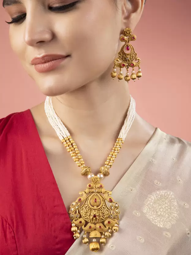 Brass Gold-plated Gold Jewel Set (Pack of 1)