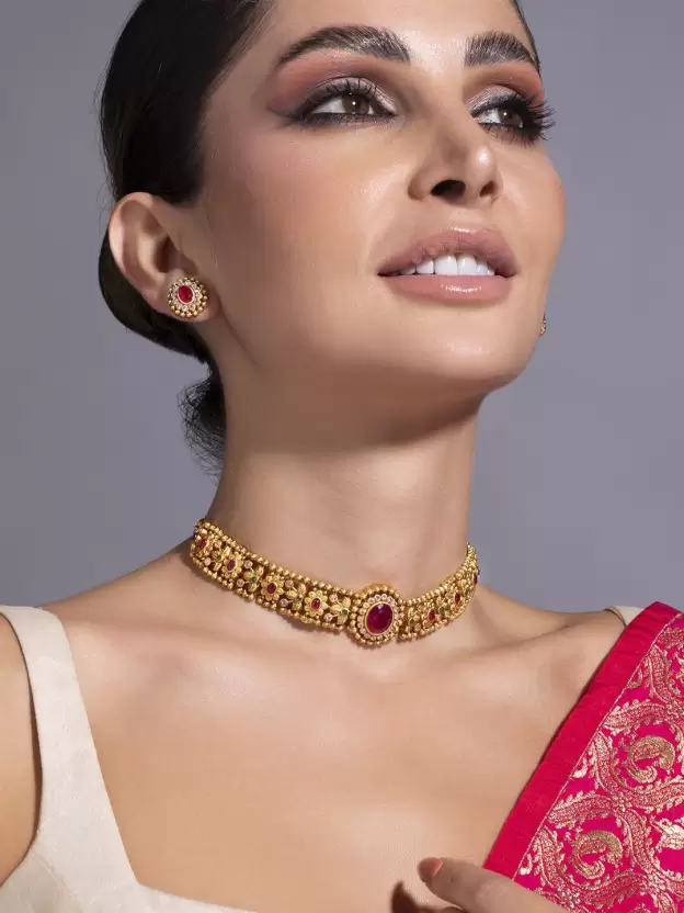 Alloy Gold-plated Gold, Ruby Red, Green Jewel Set (Pack of 1)