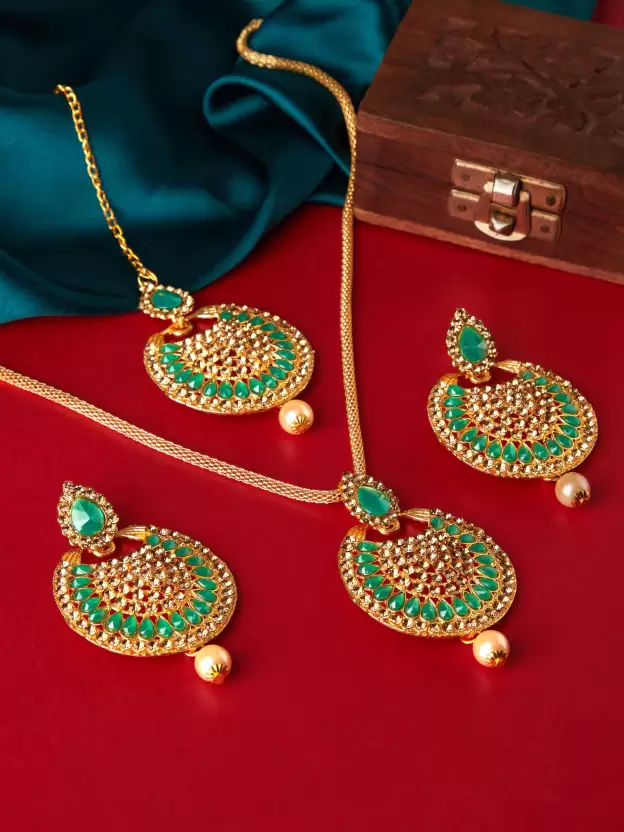 Alloy Gold-plated Gold, Green Jewel Set (Pack of 1)